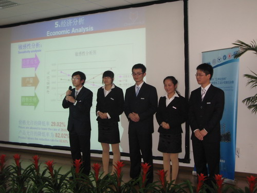 生化学院连续三年参加了浙江省大学生化工设计大赛,今年以华东赛区一等奖的成绩获得了本次全国赛的资格。CHEMWOLF设计小组在生化学院化工专业教师指导下,以“年产2万吨碳酸二甲酯项目”为题,经过两个月的作品制作,出色的完成了大赛的全部任务。在决赛现场,CHEMWOLF设计小组展现了我校大学生团结协作,拼搏进取,执着自信的风采。