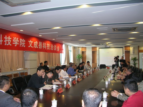 洽谈会上,吕进首先对客人们的到来表示欢迎,并介绍了学校的基本情况、专业学科结构和人才培养特色。钟方成和该县科技局负责人分别介绍了该县的基本情况、经济发展现状及汽车零部件、农产品加工等支柱产业。吕进代表学校与文成县政府签订了科技合作协议,双方表示将通过共建项目联合开发平台、科学试验与检测平台、培训服务平台、人才交流平台、互访交流平台等开展全面科技合作。