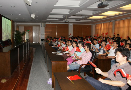 10月1日,国庆盛典大阅兵引举世瞩目。留校学生在行政楼328会议室、食堂、寝室通过电视、网络收看盛典直播,共同感受新中华60年的辉煌成就,祝愿伟大的祖国。