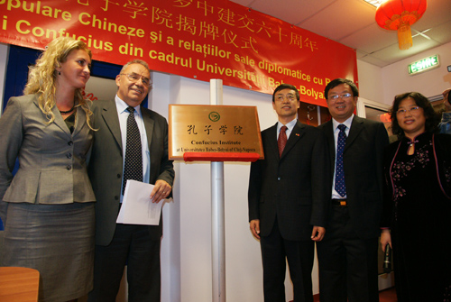 9月21日,由我校承办的罗马尼亚克鲁日巴比什-波雅依大学孔子学院正式成立。中国驻罗大使刘增文,罗外交部国务秘书纳塔利娅•因托泰罗,克鲁日巴比什-波雅依大学校长、罗教育部前部长安德烈•马格与我校校长杜卫等出席揭幕仪式并致辞。