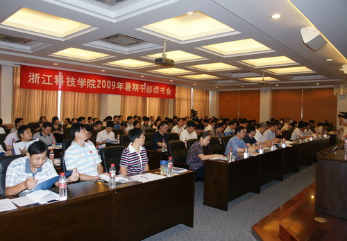 8月26日,2009年暑期干部读书会召开。校党政领导班子成员出席会议。校党委书记徐志平做开班动员,校长杜卫做主题报告。会议由校党委副书记胡浙平主持。
