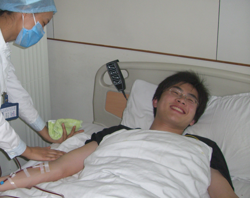 今年23岁的雷伟锋是生物工程专业的大三学生,2007年5月他报名登记捐献造血干细胞。2008年末,他接到中国造血干细胞捐献者资料库治理中心通知,他的造血干细胞与一位白血病患者初配成功。
