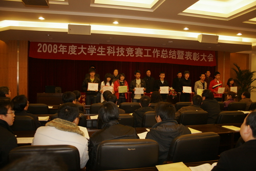 2008年学校精心组织参加了11项大学生科技竞赛,组织参与了多项全国、省级学术团体及行业组织的学科竞赛。在国家教育部、相关部委及省教育厅主办的大赛中,获国家奖8项、省三等及以上奖50项;在学术团体及行业组织的大赛中,获国家奖(含赛区)3项,省三等以上奖173项。