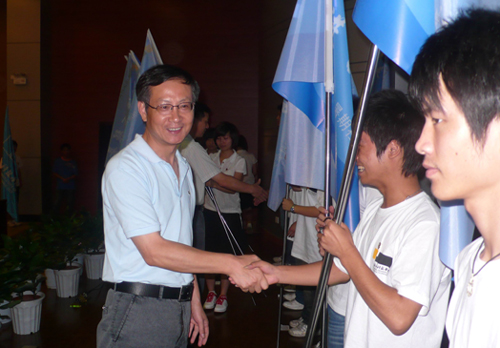 “走进企业 走进行业 走进百强县!我们出发!”7月2日,我校2008年大学生暑期社会实践出征仪式在图书馆第一报告厅隆重举行。校党委书记徐志平、党委副书记陈浩出席会议并为“走进百强县”、“走进企业、走进行业”重点实践团队授旗。