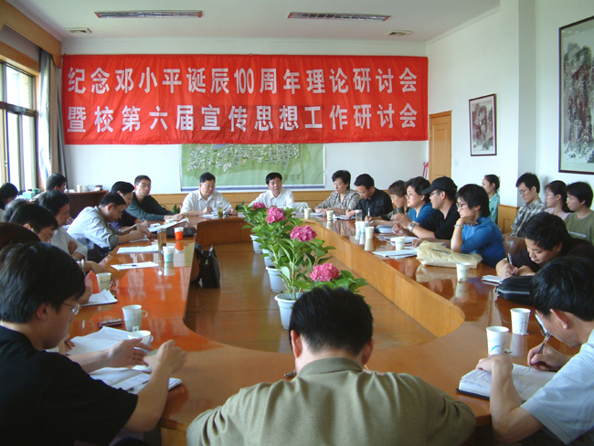 6月3日,我校纪念邓小平同志诞辰100周年理论研讨会暨学校第六届宣传思想工作研讨会在学院路校区举行。学校党委副书记、学校思政教育研讨会会长胡浙平,副院长龚建立出席会议并讲话。会议由学校党委委员、组织部部长,学校思政教育研究会副会长黄丰平主持。学校思政教育研究会理事、各系辅导员、社科部部分教师及论文作者参加了会议。