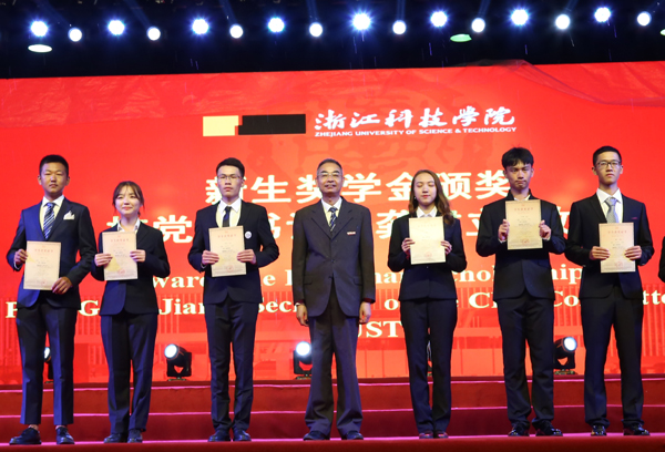 龚建立为获得新生奖学金的同学颁奖。