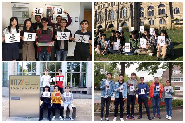 10月1日,是祖国母亲的生日,在这个举国欢庆的日子里,浙科师生们亲手写下祝福,表达对祖国的热爱之情,送上对祖国最真挚的祝福。“祖国,生日快乐!”这是在德国的学习的外国语/中德学院2+3学生的心声,求学他乡,祖国在他们心中依然重千斤,他们从汉诺威、德累斯顿、纽伦堡等地发来照片遥寄相思祝福。