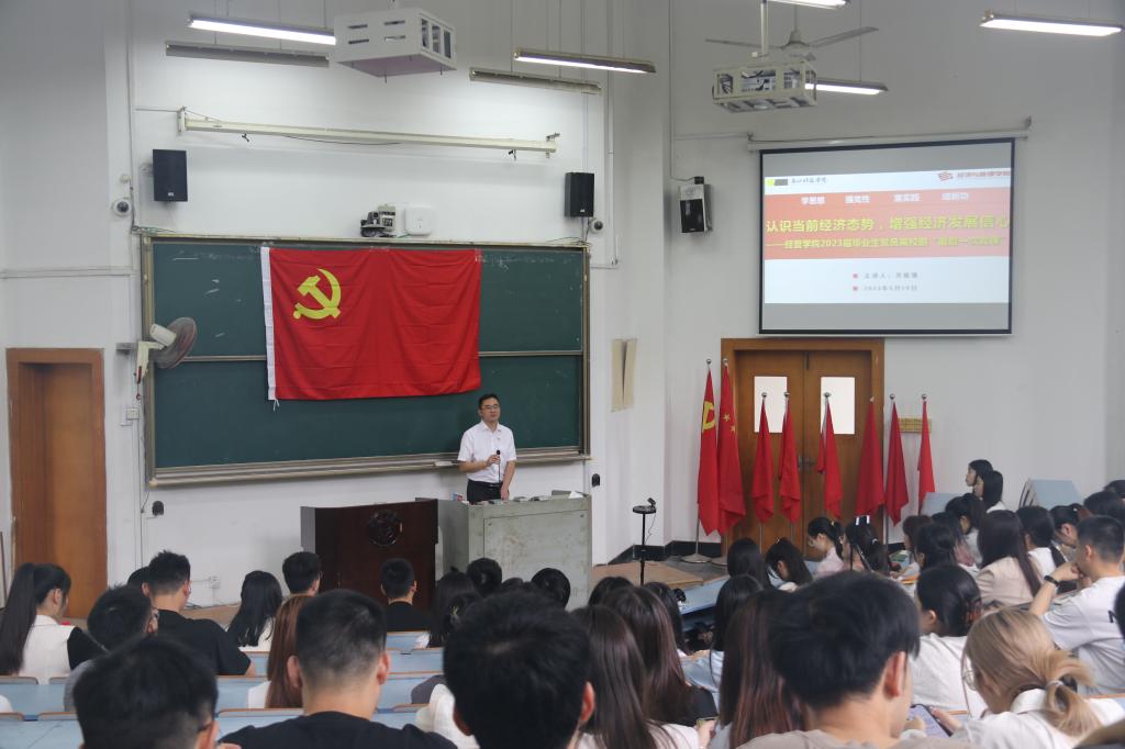 学院相关负责人以“认识当前经济态势、增强经济发展信心”为主题,重点从我国经济高质量发展取得的新成效,我国经济发展面临的新变化新挑战和党中央关于经济发展的重大决策部署方面进行讲授,引导广大毕业生党员科学认识当前经济态势,积极调整心态,主动迎接挑战。他勉励毕业生接续奋斗,养成终身学习的习惯,在将来的工作和学习岗位上勇做先锋,展现经管校友的时代担当和良好风貌,勇做民族复兴的追梦者、圆梦人。
