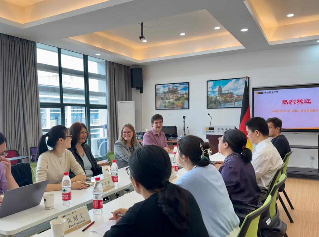 5月24日,中德联合培养“2+3”项目外方院校教授座谈会举行,我校中德学院、国际处相关负责人与正在学校访问的德国肯普滕应用科学大学Thomas Garber教授,Irene Weber教授,外办Nadine Schmied女士座谈交流。